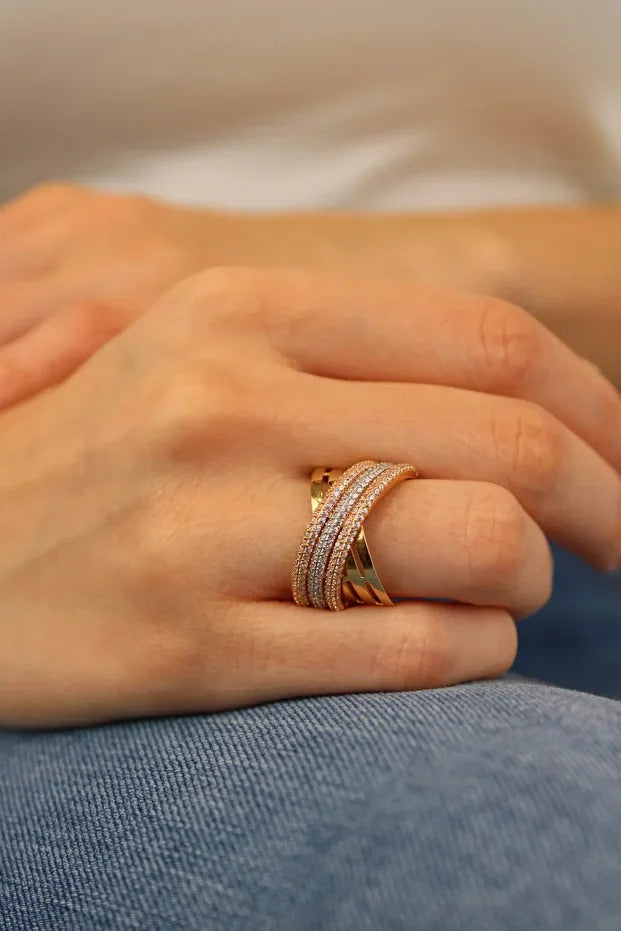 Cross Stone Design Gold Ring 14 Carat 4.44 grams