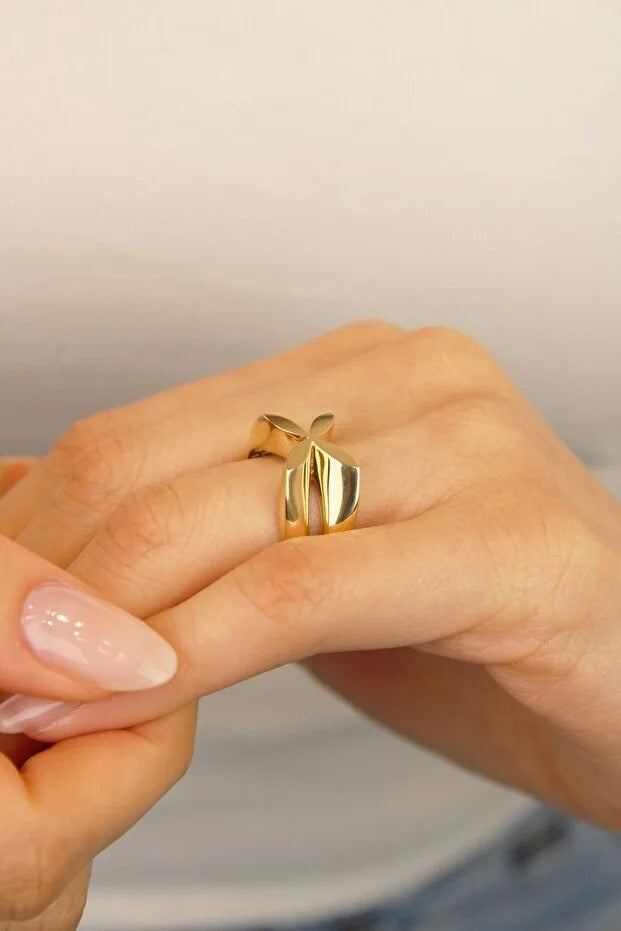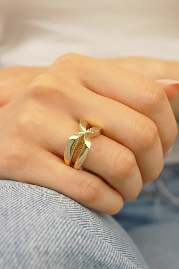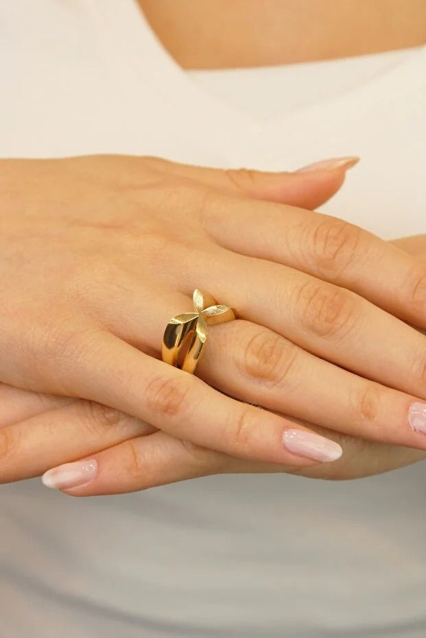 14 Ayar Altın Yonca Özel tasarım Yüzük