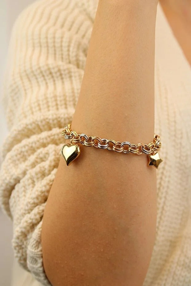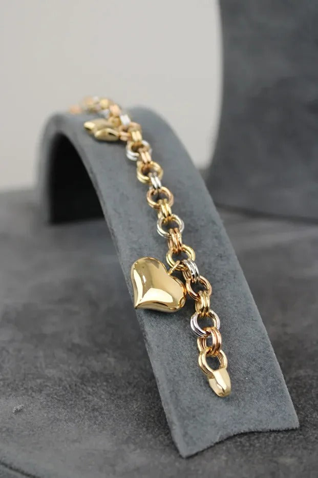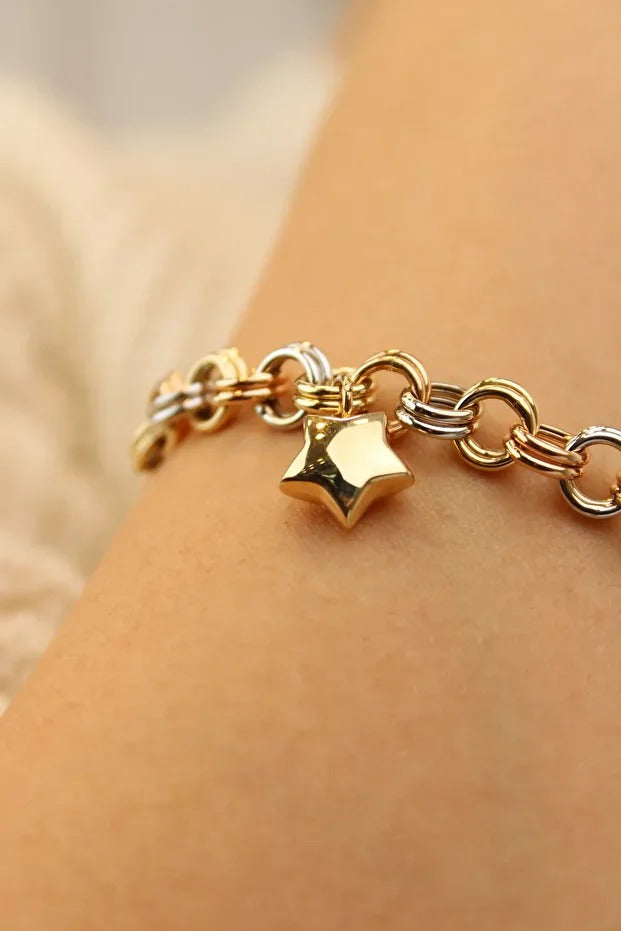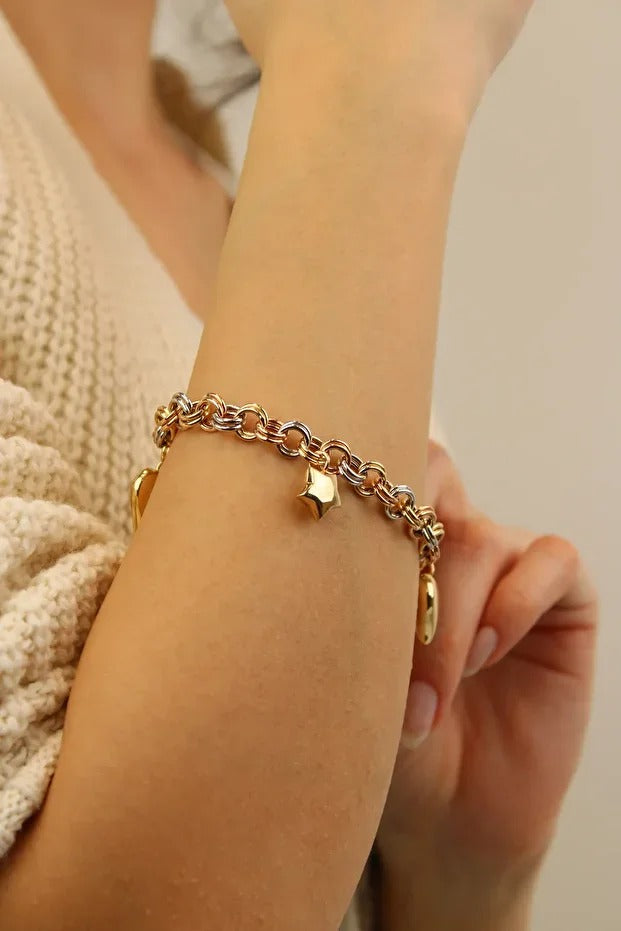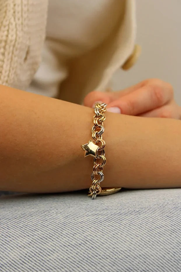 3 Renk Doch Şans Bilekliği 14 Ayar Altın Bileklik 19 Cm